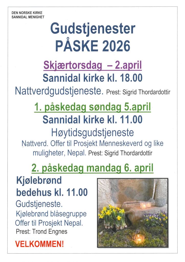 Påskens gudstjenester. mars 25, 2026 ~ kariskarvang Del dette: Del på X(åpnes i en ny fane) X Del på Facebook(åpnes i en ny fane) Facebook Lik Laster inn... Relatert